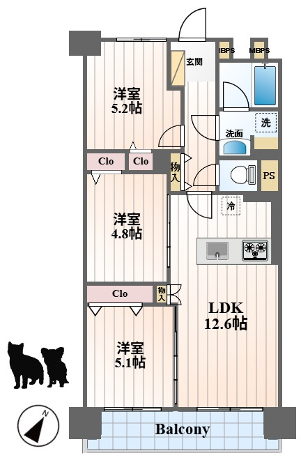 LDK 12.6帖 / 洋室 5.2帖 / 洋室 5.1帖 / 洋室 4.8帖 / |