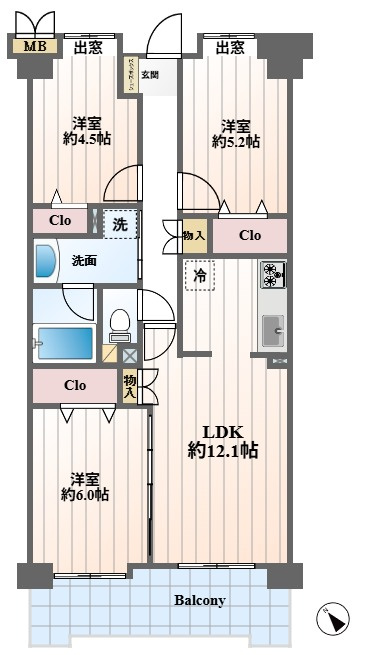 LDK 12.1帖 / 洋室 6.0帖 / 洋室 5.2帖 / 洋室 4.5帖 / |