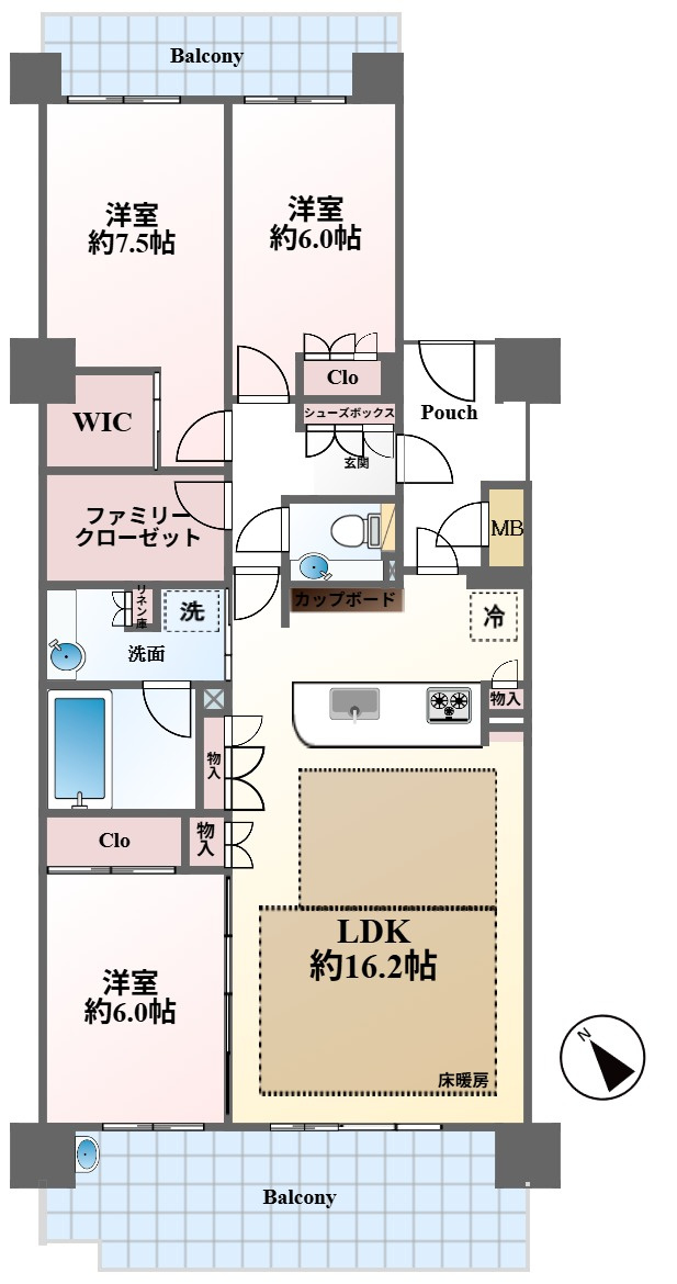 LDK 16.2帖 / 洋室 6.0帖 / 洋室 6.0帖 / 洋室 7.5帖 / |