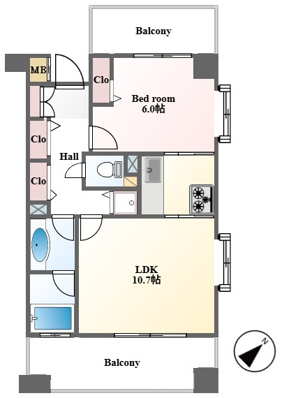 LDK 10.7帖 1室 / 洋室 6.0帖 1室 / |