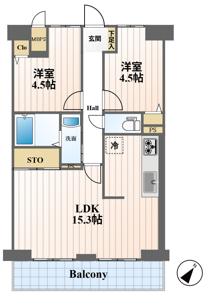 LDK 15.3帖 / 洋室 4.5帖 / 洋室 4.5帖 / |