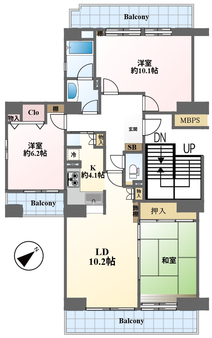 LDK 10.2帖 / 洋室 10.1帖 / 洋室 6.2帖 / 和室 6.0帖 / |