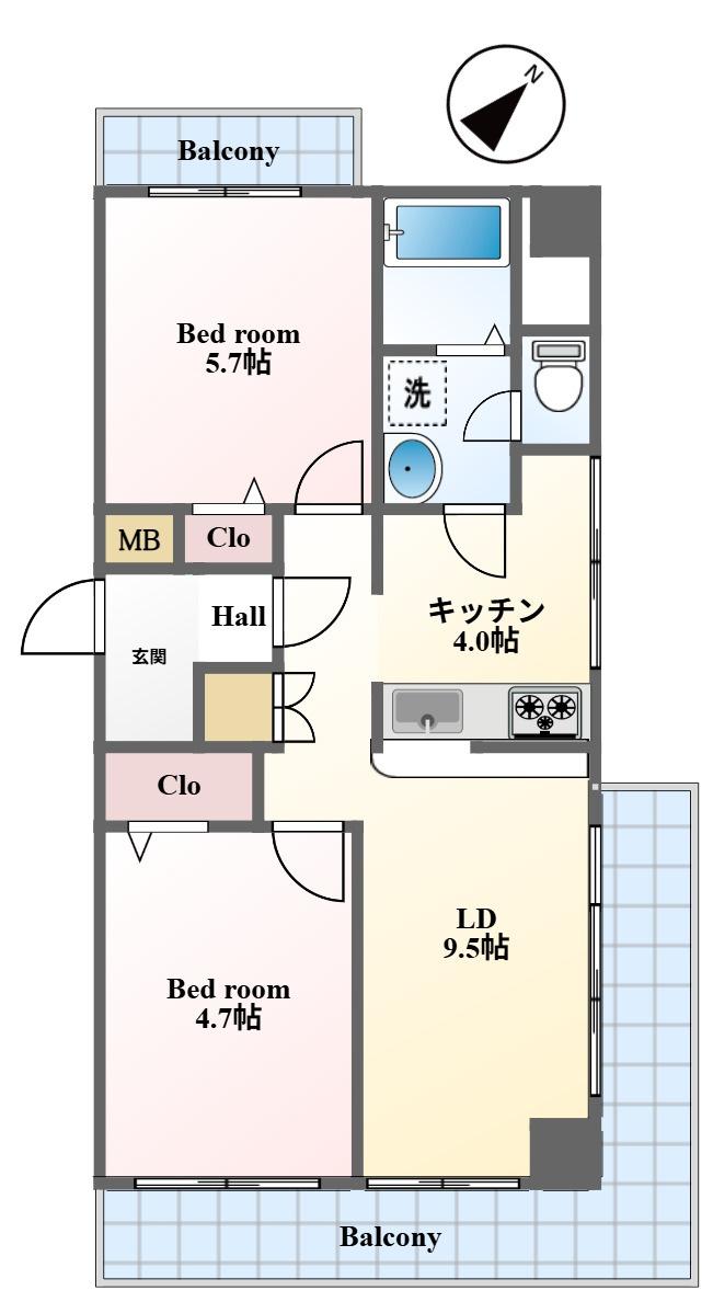 LDK 13.5帖 / 洋室 5.7帖 / 洋室 4.7帖 / |