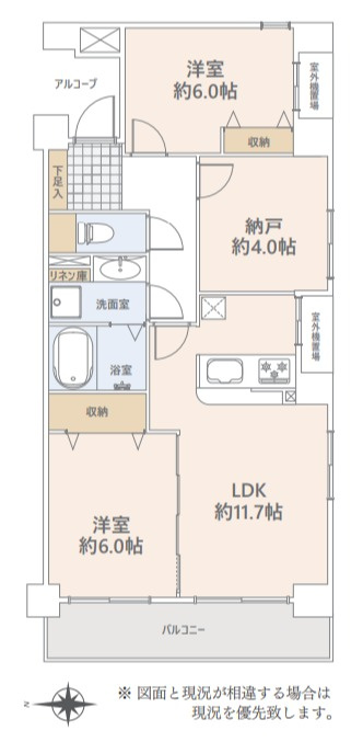 LDK 11.7帖 / 洋室 6.0帖 / 洋室 6.0帖 / S(納戸) 4.0帖 / |