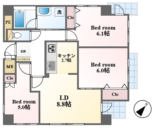 LDK 11.5帖 / 洋室 6.1帖 / 洋室 6.0帖 / 洋室 5.0帖 / |