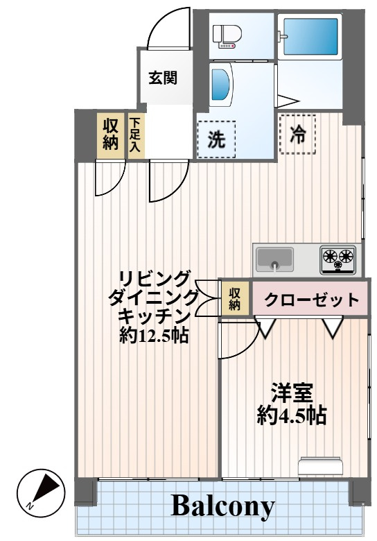 | 専有面積 | 41.68㎡ | バルコニー面積 | 5.30㎡ |