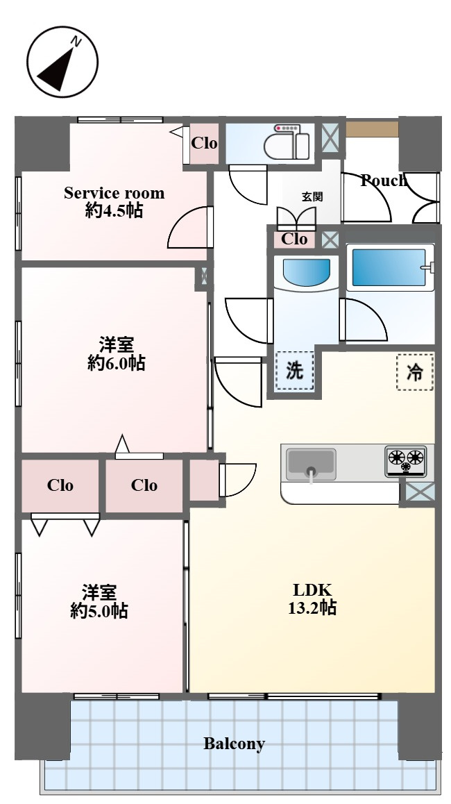 LDK 13.2帖 / 洋室 5.0帖 / 洋室 6.0帖 / S(納戸) 4.5帖 / |