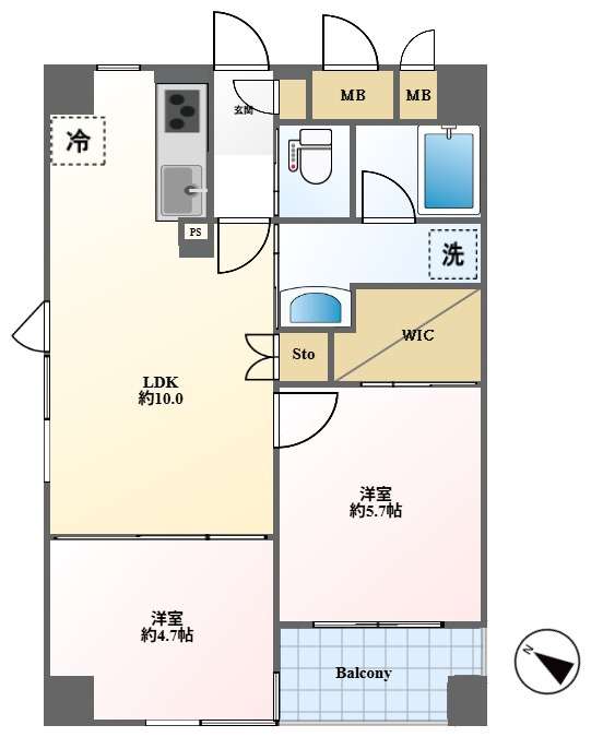 LDK 10.0帖 / 洋室 5.7帖 / 洋室 4.7帖 / |