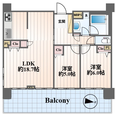LDK 18.7帖 / 洋室 6.0帖 / 洋室 5.0帖 / |