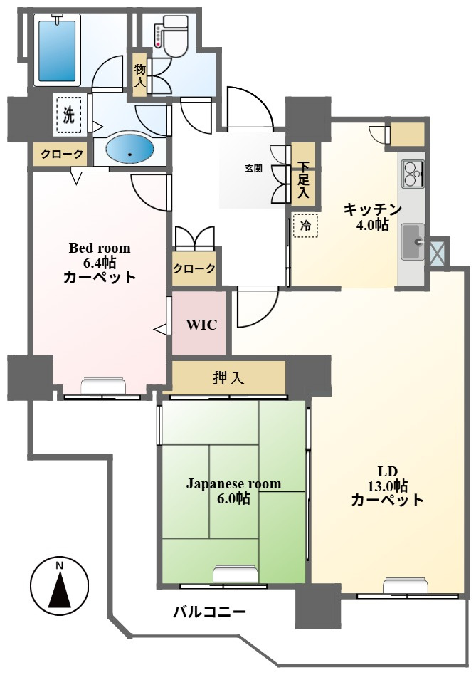 LD 13.0帖 / 洋室 6.4帖 / 和室 6.0帖 / K 4.0帖 / |
