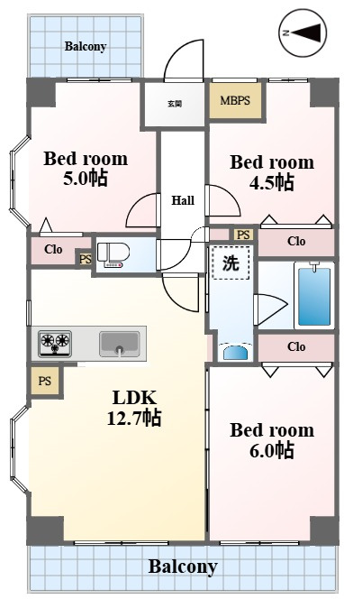 LDK 12.7帖 / 洋室 6.0帖 / 洋室 5.0帖 / 洋室 4.5帖 / |