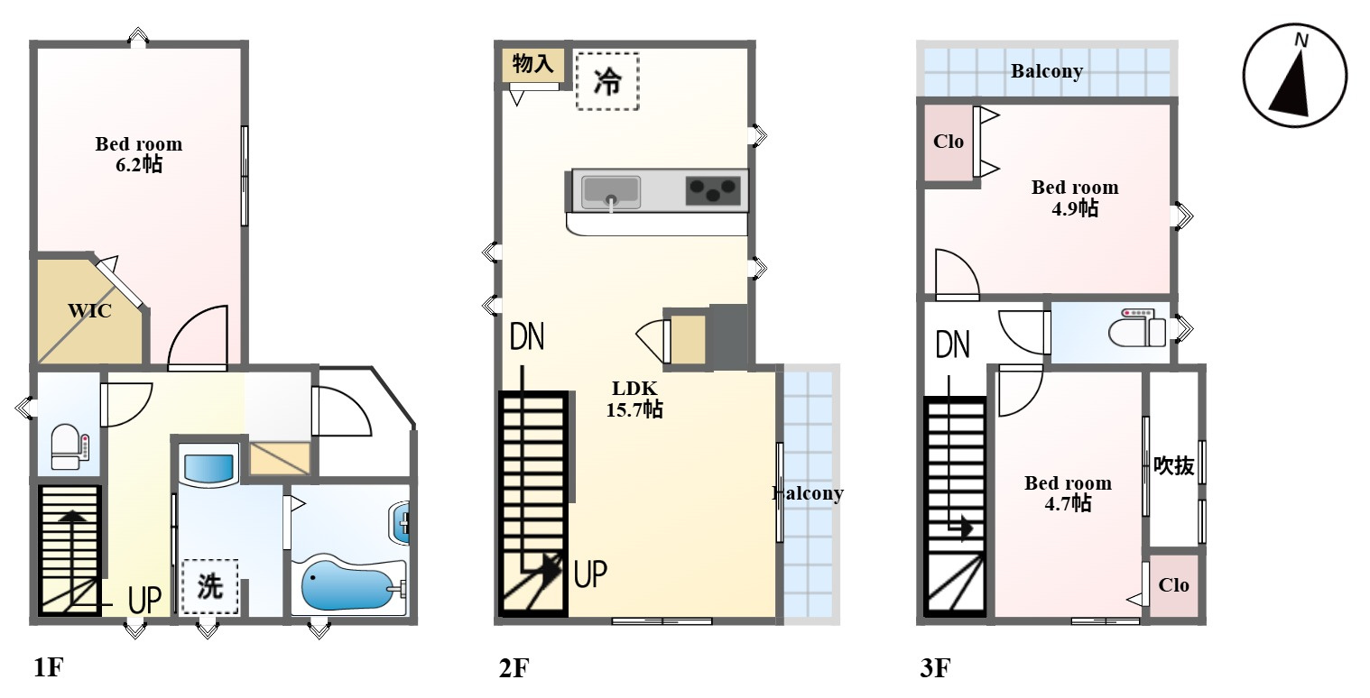 LDK 15.7帖 / 洋室 6.2帖 / 洋室 4.9帖 / 洋室 4.7帖 / |