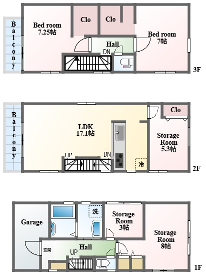 LDK 17.1帖 / 洋室 7.2帖 / 洋室 7.0帖 / S(納戸) 8.0帖 / S(納戸) 5.3帖 / S(納戸) 3.0帖 / |