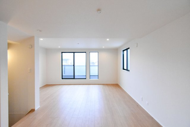 【居間・リビング】2面採光の明るいリビング♪リビング階段は家族の会話の機会も増えますね♪